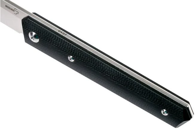 The Böker Kwaiken steak knives are knives for true meat enthusiasts. The solid G10 handle and the relatively thick blade make the knives look very tough and robust. The knives are also quite heavy. Medium rare or well done: no steak will be able to hide from this hulk. ## Japanese design