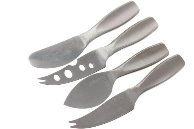 This Boska cheese set mini contains four cheese knives to cut and present cheese: a presenting knife, a spreading knife, a parmesan knife and a cheesy knife. The right knife for any type of cheese. Complete and indispensable when creating a cheese board.
