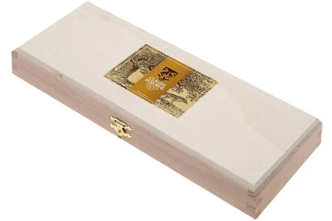 With this Claude Dozorme Cheese knife set your cheese board will all of a sudden become a lot more special. The cheese knife has a very thin grind. As a result you will be able to cut the most difficult cheeses into slices or cubes. The fork will help you keep the cheese in place, without touching it with your hands.