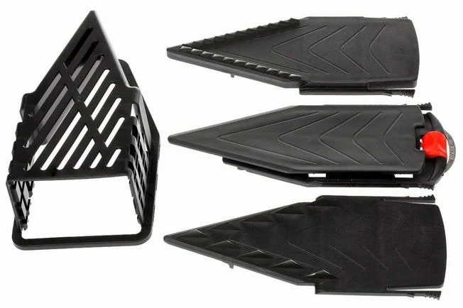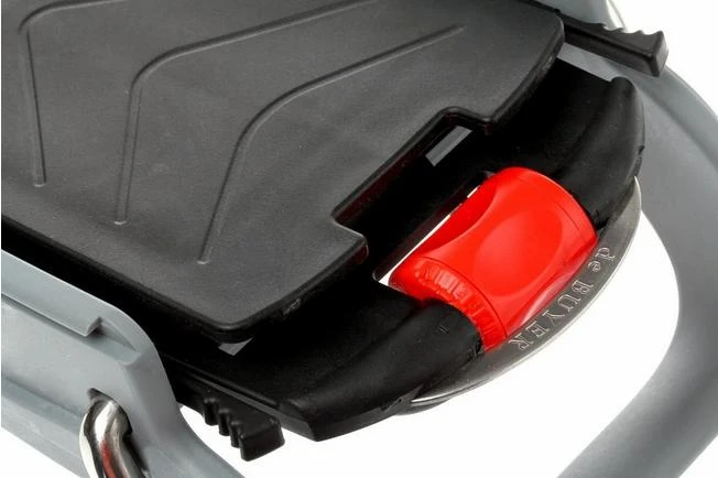 DeBuyer is a very renowned manufacturer of many products that are used in a professional kitchen. They keep on searching for new and innovative techniques and constructions. The Mandolin Viper doesn’t only look dashing, but also works very fast and convenient. You choose the desired ‘chop course’ which may or may not have vertical blades for cutting ‘en julienne’. Then adjust the cutting depth with the orange turn button at the handle. Slide the hand guard with ‘pusher’ into the conduction rail and let the cutting begin!
