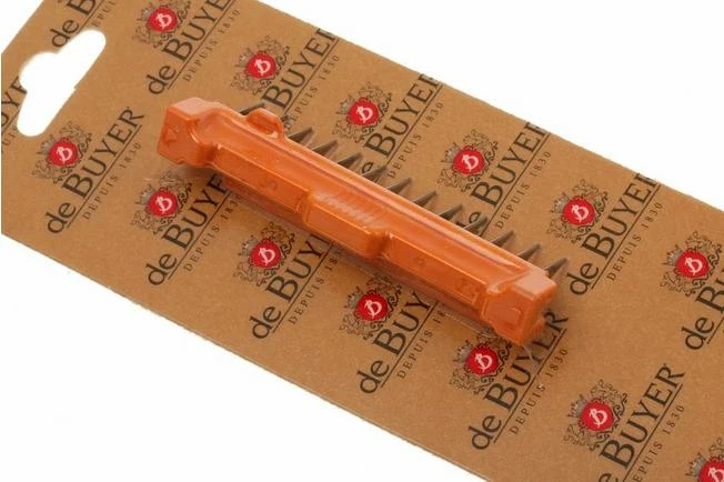 This de Buyer julienne knife can be used as a replacement or spare part for the de Buyer Ultra mandoline. The space between the cutting edges is 7 mm. The knife is enhanced with a nice orange colour.