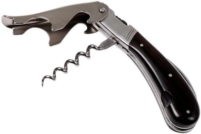 With the Laguiole Magnum waiter’s corkscrew from Fontenille Pataud you open your wine bottle the same way a sommelier would. The knife combines three functions: it is a foil cutter, corkscrew and bottle opener. Made by the French knife makers from Fontenille Pataud. This waiter’s corkscrew has a handle made from ebony and stainless steel which gives this waiter’s corkscrew an elegant and sleek design.