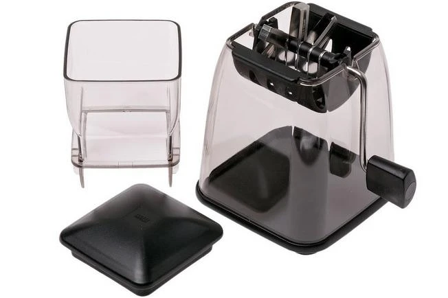 With the GEFU cube cutter vegetable cubes have never been so easy to make. Perfect when you need to cut onions, tomatoes, peppers or other vegetables. Each piece will precisely and perfectly be cut, not chopped. Great on toast, pizza or in a salad. Add large pieces to the collecting container. By turning the lever the blades will start to rotate. The cubes will fall into the collecting container which can also serve as a storage container. With the included lid you can easily close the container. The knives are made from stainless steel. The other parts are made from plastic. All parts, however, can be cleaned either by hand or in the dishwasher.
