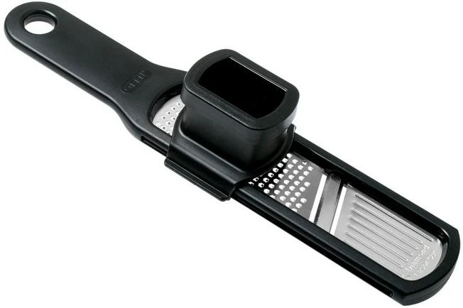 This GEFU RAFINO garlic slicer and grater, 50472 is perfect when slicing or grating garlic and ginger. The GEFU RAFINO comes with a ‘pusher’. You place the garlic or ginger in the pusher, after which you can safely move the pusher over the grater. This way you grate the whole garlic, without endangering your fingers!