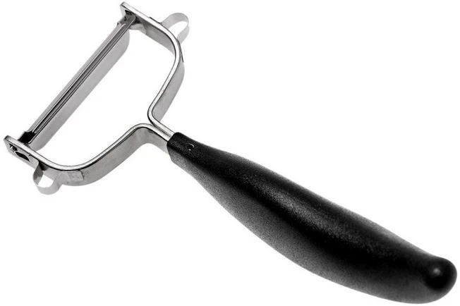 With the GEFU Universal peeler you can quickly, safely and easily peel vegetables and fruit such as cucumbers, courgettes and carrots. However, even potatoes can be peeled with this universal peeler. The narrow opening ensures that only a thin piece of skin is removed. The bottom blade is thin to ensure that little to no leftover food sticks to the blade. With the integrated eyer you can remove potato eyes. In addition, with this tool you can easily peel lemons or limes. The blade is made from stainless steel. The ergonomic handle seamlessly merges with the rest of this kitchen tool. Very hygienic.