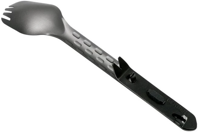 With at least 9 functions and a total weight of only 25 grams the Gerber Devour is the only tool you need to prepare a meal, to eat and to clean. Perfect for anyone who is travelling with little gear. The Devour was designed to prepare a meal from start to finish. You can use the Devour as a fork, spoon, knife and scraper. Enhanced with a unique standard to make sure the spork stays in a horizontal position. On the back side you can find a multi-tool with six functions: box opener, bottle opener, can opener, pry-bar and a large and small screwdriver. The entire tool is made from aluminium. Light-weight and incredibly strong.