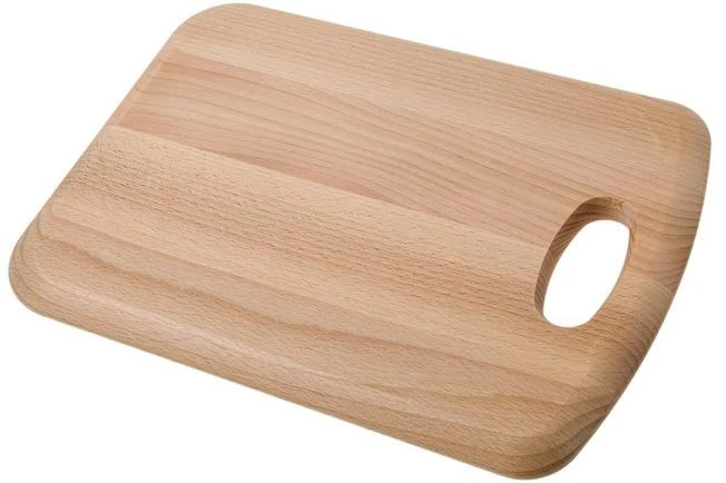 This Il Cucinino rounded cutting board is made from light-weight beech wood. The handle, edges and corners are rounded for a nice grip and look amazing. The cutting board is 34 cm wide, 24 cm long and 2 cm high.