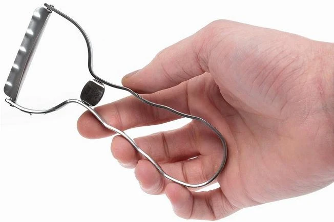 The Kai Select 100 peeler T is considered by many to be the best peeler there is. Everyone knows Kai from their high-quality Japenese kitchen knives, but they also make great quality kitchen accessories.The partly-rotating cutting edge follows the shape of a product perfectly. The peeler is extremely sharp straight out of the factory. The U-shaped bracket that sticks out from the handle can be used to clean potatoes of spots and pips as well.