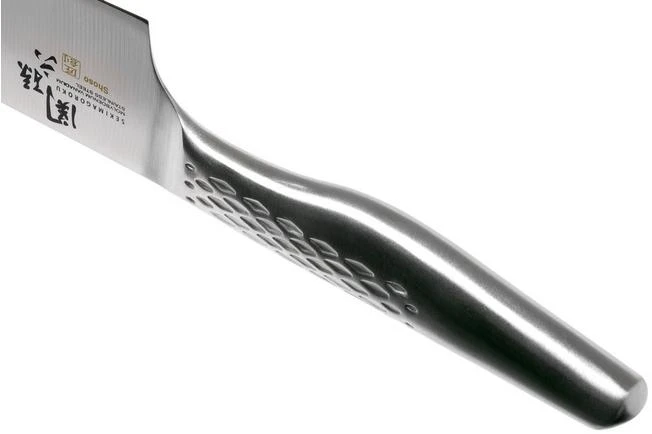 This smallKAI Seki Magoroku Shoso santoku 14.5 cm is perfect when cutting vegetables, meat and fish. It is a true all-rounder. Because the Japanese knife is completely made from stainless steel and doesn’t have any openings bacteria don’t stand a chance. In addition to the hygienic aspect, this knife distinguishes itself because of its excellent ergonomics and unparalleled sharpness thanks to the innovative sharpening technology.