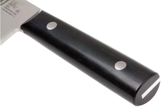 The Kai Shun Classic DM-0767 is a cleaver made from AUS8 steel. A strong, stainless type of steel that is easy to sharpen if necessary. As you might expect from a cleaver the blade is thick and solid. Perfect when processing larger pieces of meat. Cutting poultry to size, chopping meat into pieces for a stew or cutting lobster will therefore be a piece of cake.