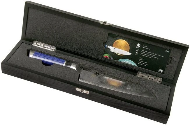 The Kai Shun Engetsu Limited Edition santoku is a limited edition santoku from the Engetsu collection. A collection with 1996 kitchen knives in total, divided over three different kitchen knives. This santoku, a chef’s knife and a Chinese chef’s knife. With this Engetsu collection Kai is celebrating the 20th anniversary of the Kai Shun brand. This santoku is enhanced with an 18 cm long blade and was produced 842 times.