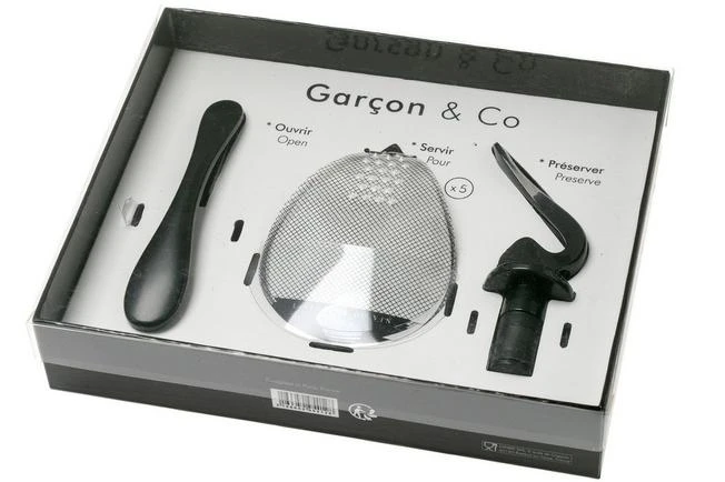 This L’Atelier du Vin Garcon et Co gift set is the perfect cet for all wine enthusiasts. This set contains everything you need to open, serve and store a bottle of wine. This set is namely comprised of a L’Atelier du Vin Garçon Métal Noir waiter’s corkscrew with integrated foil cutter, L’Atelier du Vin Bouchon Gard’Bulles bottle stopper and five L’Atelier du Vin aeration spouts to slide into the bottleneck.
