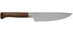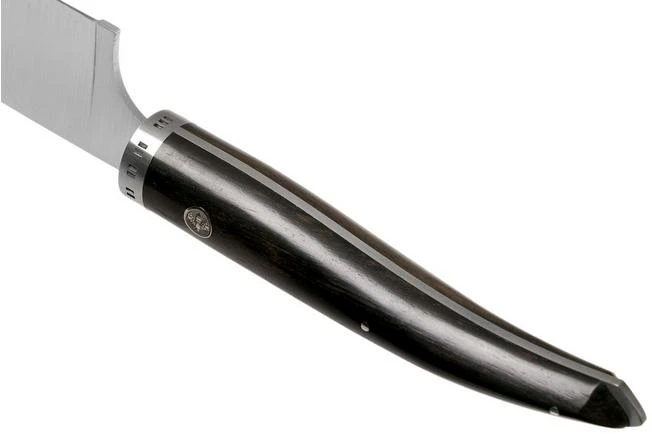 The Laguiole en Aubrac Gourmet chef’s knife 20 cm is an elegant and versatile handmade kitchen knife. The large ‘belly’ and pointed tip of the blade stand out. Because of this shape the middle of the knife is quite large making it easy to cut a piece of meat or vegetables into pieces. The narrow edge towards the tip is perfect for the more detailed tasks. These knives are made by hand in Espalion, France.