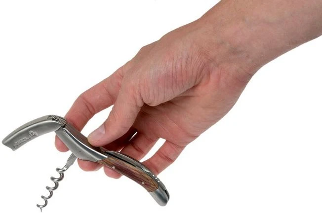 The Laguiole en Aubrac sommelier knife is a very fancy and luxurious sommelier knife. Opening a bottle of wine becomes even more fun if you use the Laguiole en Aubrac sommerlier knife. The stunning wooden inlay is made from old oak wine barrels. As such it gets that stunning burgundy colour. This sommelier knife is made by hand in the Laguiole region by the experts of Laguiole en Aubrac. As such each version is a one-of-a-kind tool!