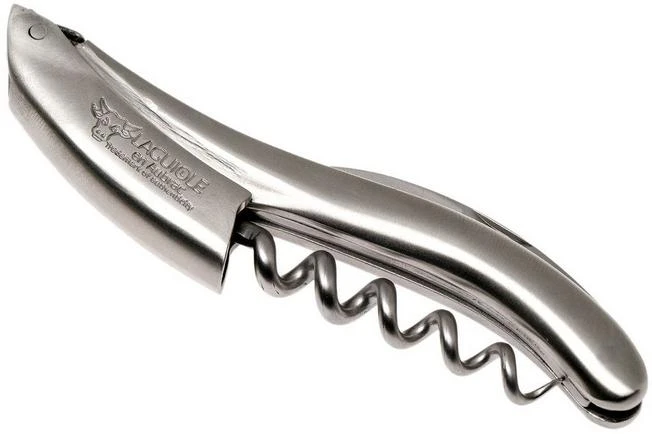 The Laguiole en Aubrac waiter’s corkscrew SOP99IMI is a very fancy and luxurious knife. The knife is completely made from matted stainless steel. Use this knife to open a bottle of wine with added cachet. This stylish corkscrew is made by hand by the craftsmen of Laguiole en Aubrac.