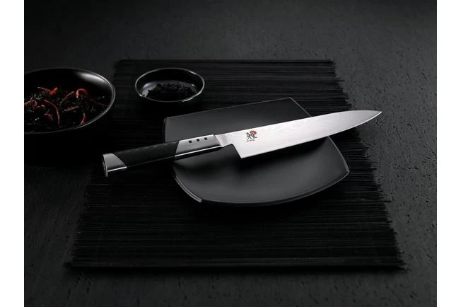 The Miyabi by Zwilling chutoh from the 7000D collection is a utility knife that combines excellent cutting properties with irresistible design. Only the very best materials have been used in the creation of this beautiful knife. The knife has been sharpened in three phases according to the traditional Japanese methods, which results in a sharpening angle of no more than ten degrees. Unbeatably sharp!