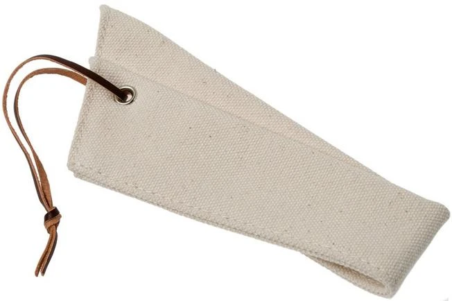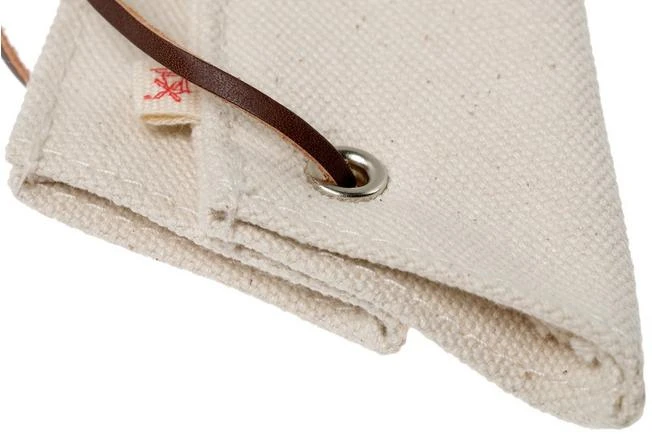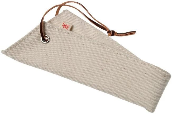 This Robert Herder knife guard can hold two Robert Herder small Buckels knives or two small peeling knives. It is made from Japanese sailing cotton enhanced with a leather cord. With this guard you can easily and safely take a set of two knives with you, to a picnic for example. Or as a gift with a set of Buckels knives, this is a great addition.
