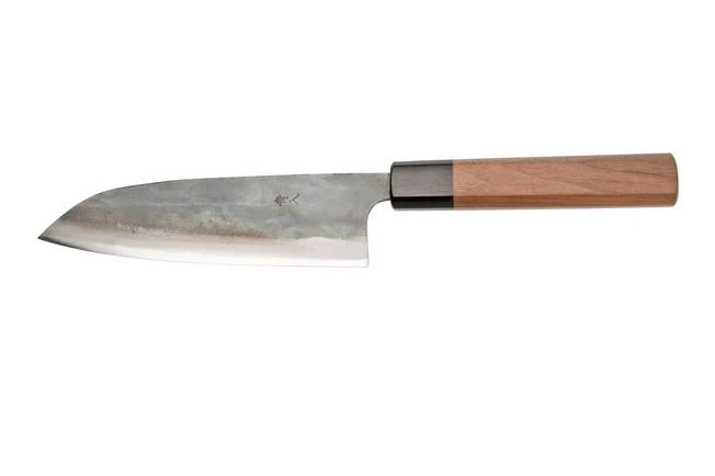 The Sakai Takayuki Blue 2 Kurouchi 01172 wa-santoku is a remarkable and versatile Japanese kitchen knife. A Santoku is the Japanese version of the chef’s knife. The knife is perfect for chopping vegetables, meat, fish, onion, garlic and various types of herbs. With a blade length of 17 cm, this santoku knife is relatively small. This means you have a lot of control while cutting, and the knife is also nice and lightweight.