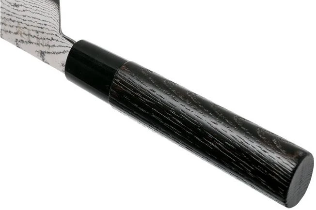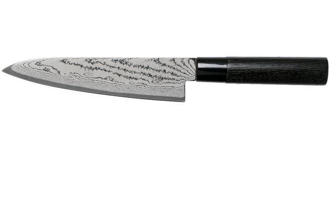 The Tojiro Shippu Black damascus chef’s knife 18 cm is the smallest, but definitely not the least of the three chef’s knife from the Shippu black collection. The knife is easy to use because the 18 cm long blade is slightly shorter than your average chef’s knife. As a result this chef’s knife is perfect for cutting small to average size products.