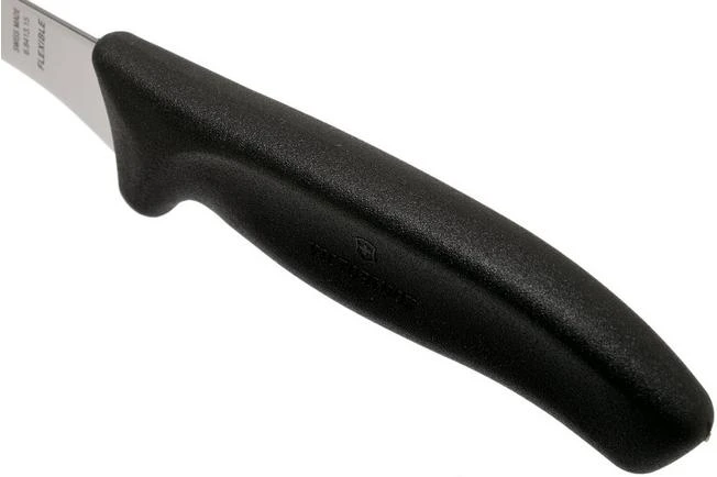 The Victorinox SwissClassic boning knife 15 cm, black is perfect when removing bones and skinning fish, meat and poultry. With its narrow blade this knife can easily remove the meat from bones. Perfect for very fine work.
