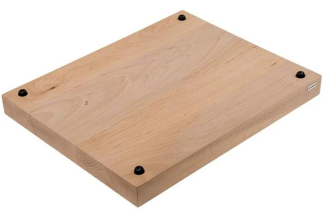 This Wüsthof 7289-1 is a very solid cutting board made of sturdy beech wood. This wood protects the edges of knives to make sure they retain their sharpness. The cutting board is 50 cm long, 40 cm wide and has a thickness of 5 cm. As well as finely cutting and slicing, you can also use this massive board as a chopping block.