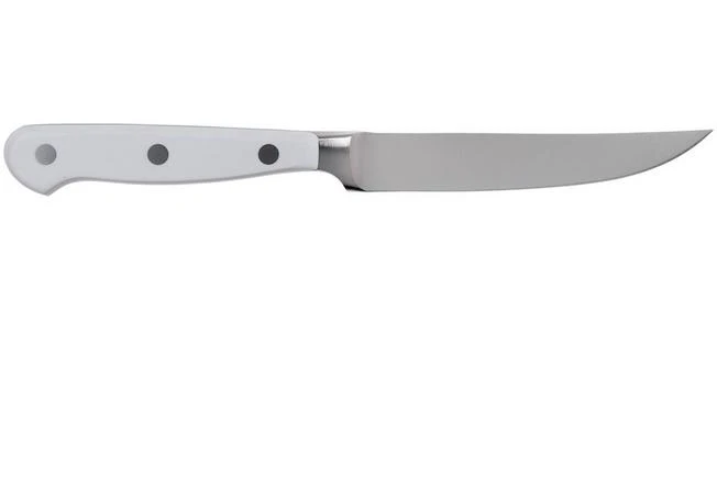If you are serving a nice piece of meat it should be accompanied by this Wüsthof Classic White steak knife! The razor-sharp blade cuts the meat, instead of tearing it. As such flavours and juices are preserved, making the meat taste even better.