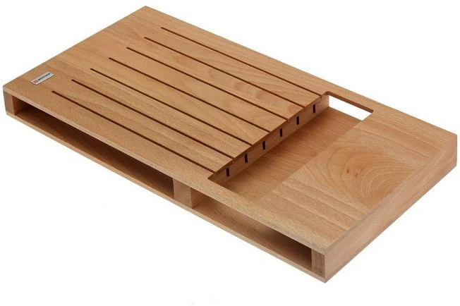 This In-drawer Knife Organiser by Wüsthof fits in all common drawers and can hold up to 7 kitchen knives with a blade length up to 23 cm. The sharp part of the blade disappears in the slots while the knives can be easily picked up out of them.