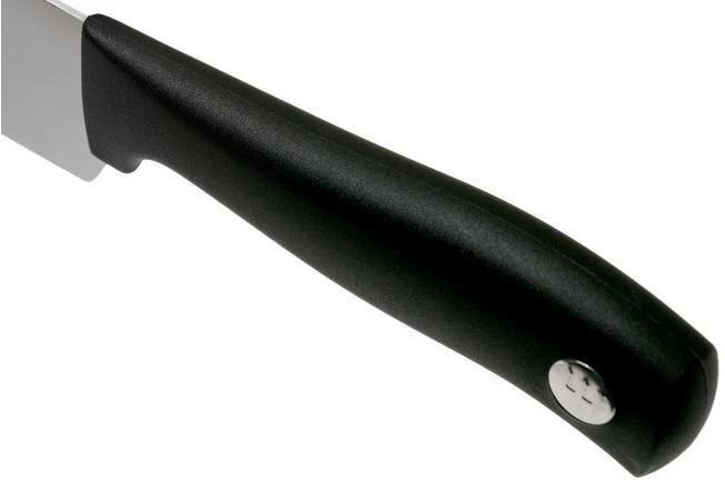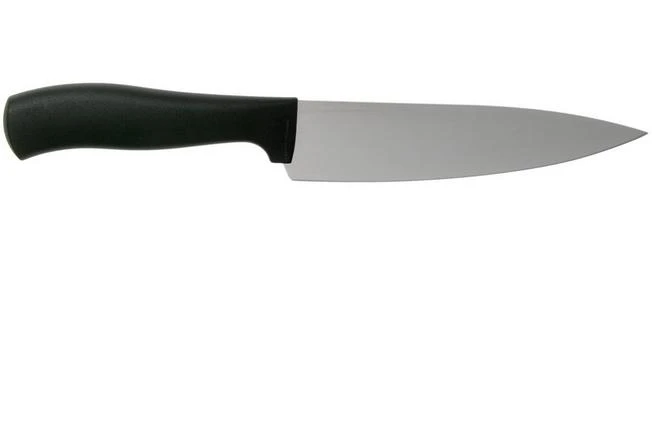 This Wüsthof Silverpoint chef’s knife 16 cm is a perfect small chef’s knife for every chef. The blade is made from stainless steel and the ergonomically shaped handle is made from a top-quality type of synthetic plastic. Very hygienic and it offers you extra grip as you cut wet products. The plastic also ensures that the knives are dishwasher proof, but we do not recommend cleaning them in the dishwasher.