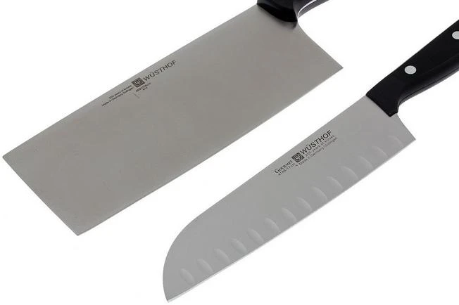 With the Gourmet kitchen knives Wüsthof has introduced a collection with an amazing price-quality ratio. Of course, the quality is in keeping with the high level of Wüsthof. The blade is laser cut from a single piece of chromium-molybdenum-vanadium steel. The polypropylene handle is sturdily attached to the blade with rivets. The blade runs throughout the entire handle. The result is that the knife looks a lot like the knives from the Wüsthof Classic collection. However, because of the production method used the knives from the Gourmet collection are a lot more affordable. The weight is also lower, which is great for many users. The Gourmet collection is extensive to make sure you can comprise your own perfect set.