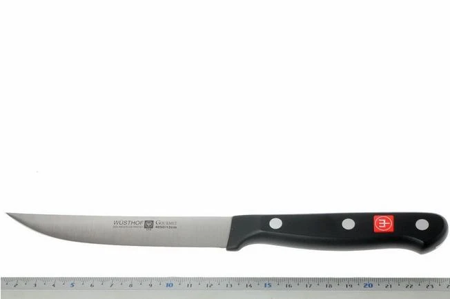 WÜSTHOF has fantastic value for money with its Gourmet series The knives have the same high quality Wüsthof stands by. The blade is laser cut from a single piece of steel (chromium-molybdenum-vanadium). The polypropylene handle is attached to the blade with tightly-secured rivets. The blade runs through the entirety of the handle. The result is a knife that looks very similar to the knives from the Wusthof Classic series. But because of the production method the Gourmet knives considerably cheaper. Many users find the lower weight an advantage as well. The Gourmet series is very comprehensive so anyone can put together their ideal knife set.