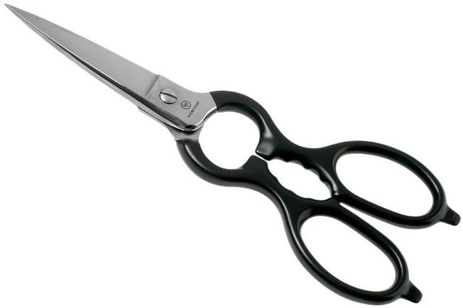 This pair of black Wüsthof kitchen scissors is indispensable in any kitchen. Because kitchen scissors are more solid than household scissors, it is great when opening hard packaging and cutting through herbs, rope, foil and much more! You can also use this pair to crack open nuts or open a bottle. A real all-rounder.