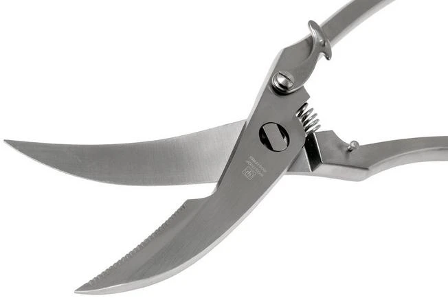 This pair of Wüsthof poultry scissors 5512 is a very practical kitchen aid for distributing chicken, turkey, goose or other poultry. Cutting off the breast, thighs and wings or cutting and portioning grilled or roasted poultry are all nasty chores without a good poultry scissors. With the Wüsthof scissors you easily cut through bones, without leaving any splinters in the meat.