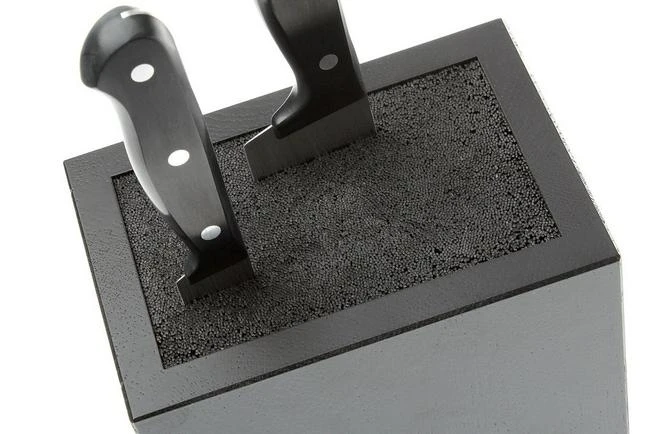 Black Variable knife block. p to 10 knives can be stored freely in the fine synthetic bristle insert.