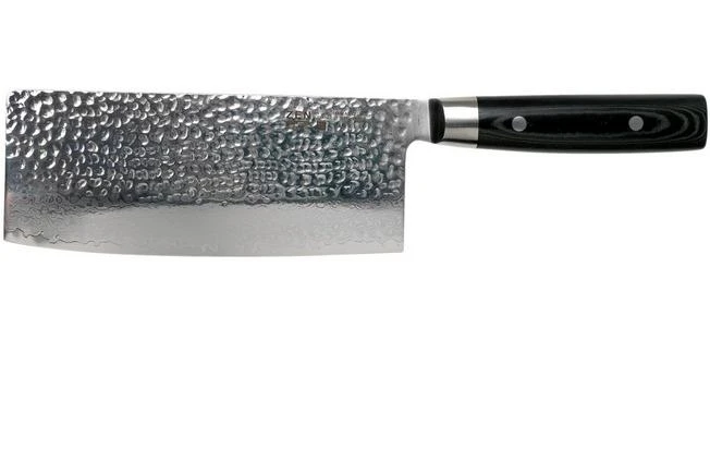 The Yaxell Zen Chinese chef’s knife is a stylish Japanese vegetable knife with the recognizable shape of the Chinese chef’s knife. In the Chinese kitchen this chef’s knife is often used because the height of the blade enables you to easily use your fingers as a guide as you use the knife. It works safely and quickly and is very practical. You use a Chinese chef’s knife to finely cut herbs and vegetables, but a Chinese chef’s knife can also be used to, for instance, crush garlic. And with the high blade you can easily scoop the cut vegetables or herbs in the pan.